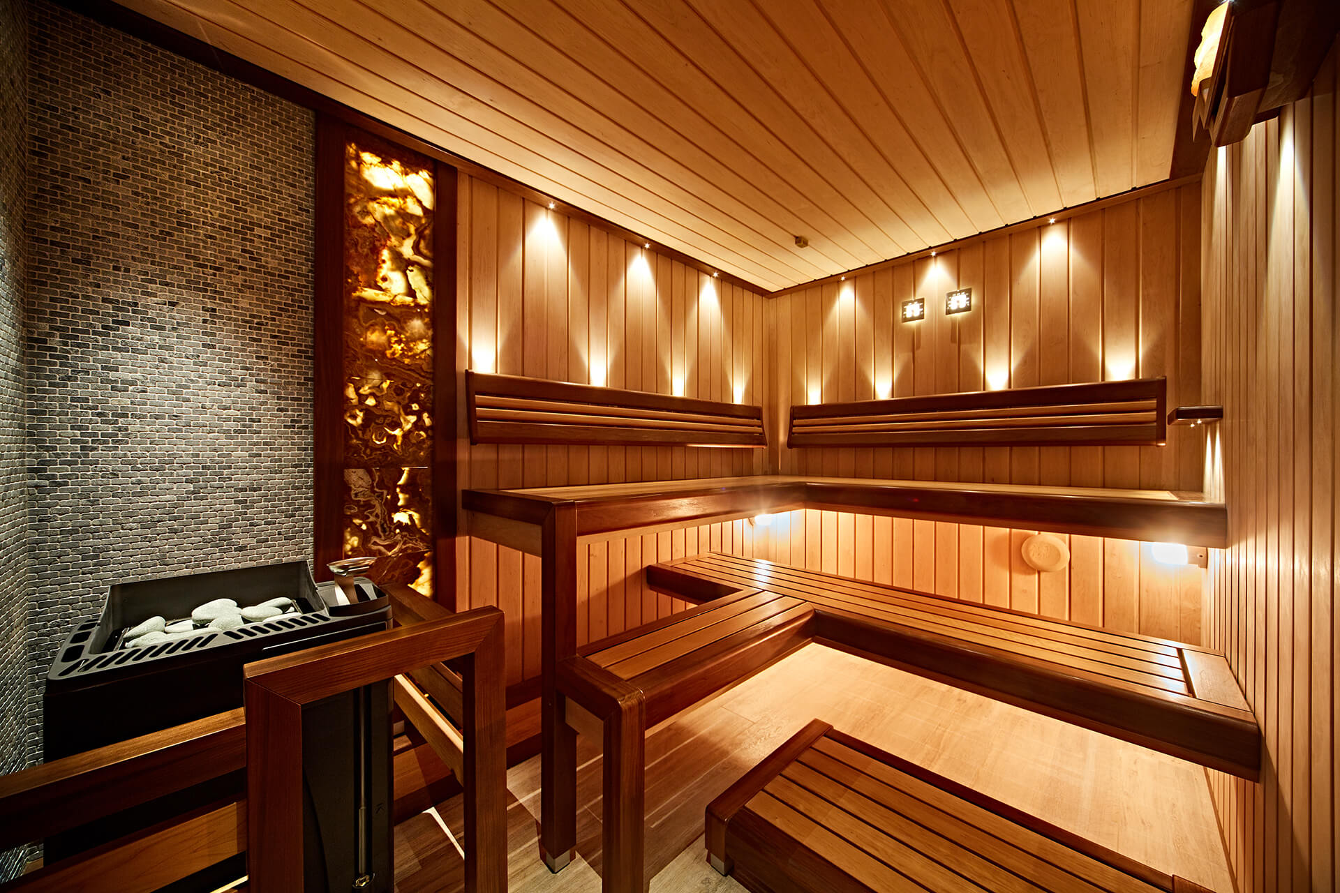 Материалы отделки внутри: лиственница, осина, липа — не смолятся, не выделяют вредных веществ и устойчивы к перепадам температур.