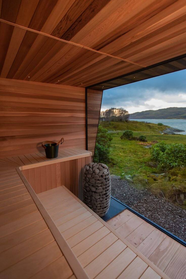 Современные бани с использованием стекла, металла, светодиодного освещения и минималистичной мебели. Часто применяются автоматические системы управления микроклиматом, встроенные парогенераторы и ароматические установки.