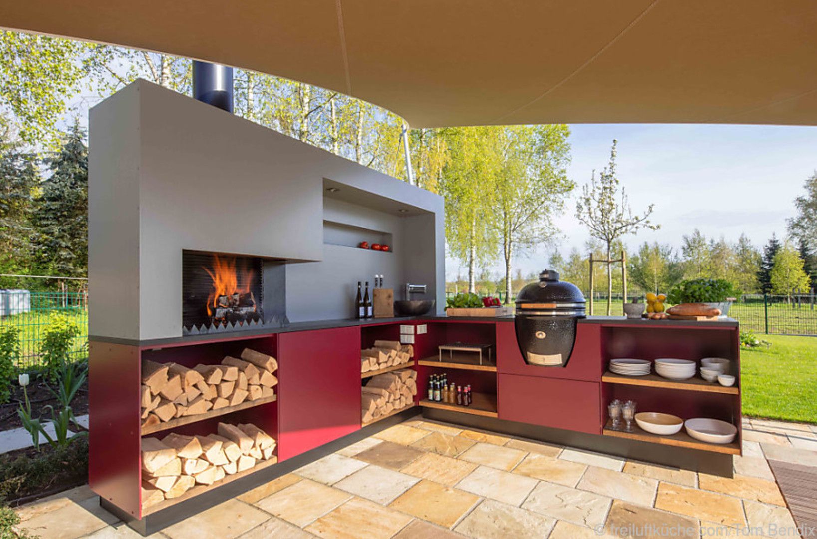 - Кирпич и плитка. Классический кирпич идеально подходит для барбекю и мангалов, а керамическая плитка или терракота могут использоваться для столешниц и декоративных панелей.