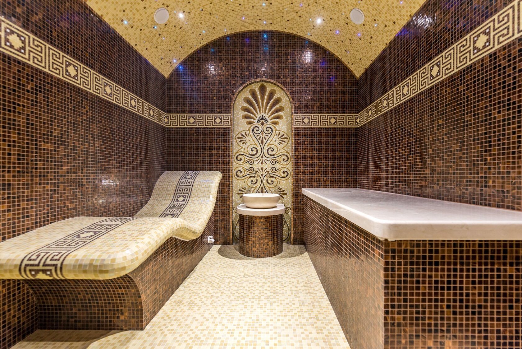 - Материалы отделки. В хаммаме обязательна отделка влагостойкими и тепловыми материалами — традиционно это мрамор, керамическая плитка, натуральный камень. Они обеспечивают теплоаккумуляцию и лёгкую очистку.