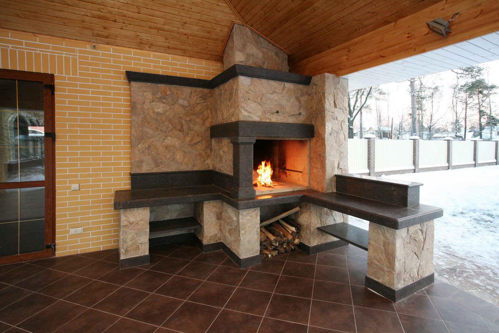- Камень или кирпич — часто применяют для изготовления мангала, барбекю или печи, так как эти материалы устойчивы к огню и высокотемпературным нагрузкам.