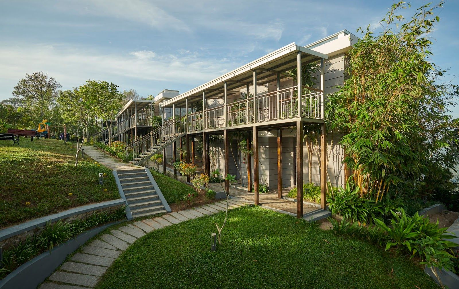 - Пансионат с зеленой крышей и водоемом. Создание микроклимата и снижение температуры летом;