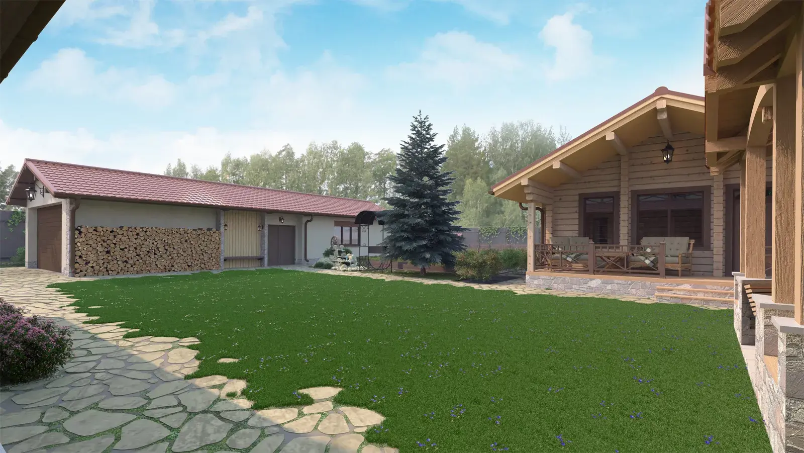 • Отдельная хозяйственная зона с дровником и котельной.